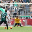 **I GOL** – 13′ pt: tentativo dalla lunga distanza di Berardi, la palla sfugge a Diego Lopez. L’arbitro di porta Damato convalida la rete tra le proteste dei milanisti. – 31′ pt: Raddoppio Sassuolo: contropiede di Berardi che chiude con un tocco di esterno sinistro, un diagonale che non dà scampo a Diego Lopez. – 32′ pt: Accorcia il Milan con un capolavoro di Bonaventura che supera di slancio due avversari e batte Consigli. – 5′ st: Il pareggio del Milan con Alex che con uno stacco imperioso di testa anticipa in uscita Consigli. – 33′ st: Terza rete personale di Berardi che irrompe in area su l’assist di Floro Flores e il tocco involontario di Zaza. Foto Ansa.