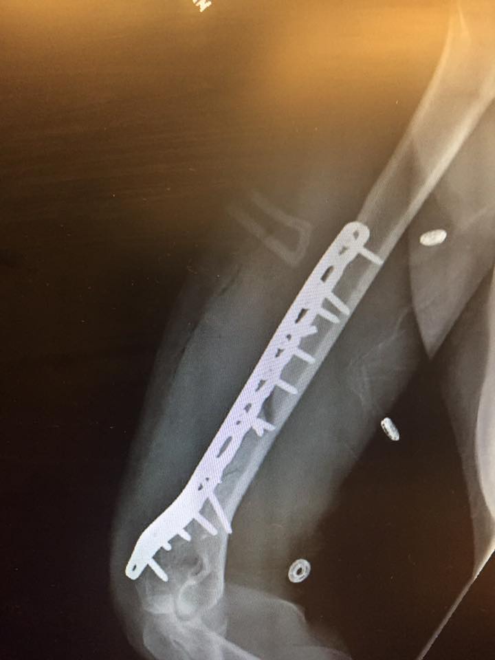 Ad annunciare la caduta e lo stop a causa della rottura del braccio è la stessa campionessa Usa, che su Facebook ha pubblicato uno status corredato con le radiografie che mostrano le fratture sul suo braccio: