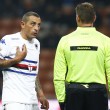 Il rigore è dubbio ma Giacomelli indica il dischetto e Palombo, oggi con la fascia di capitano per il forfait di Gastaldello, realizza. Dopo il vantaggio blucerchiato la Viola non ci sta e si proietta in avanti: al 32′ Babacar prova a girarsi in area ma c’è Palombo che pare strattonarlo.