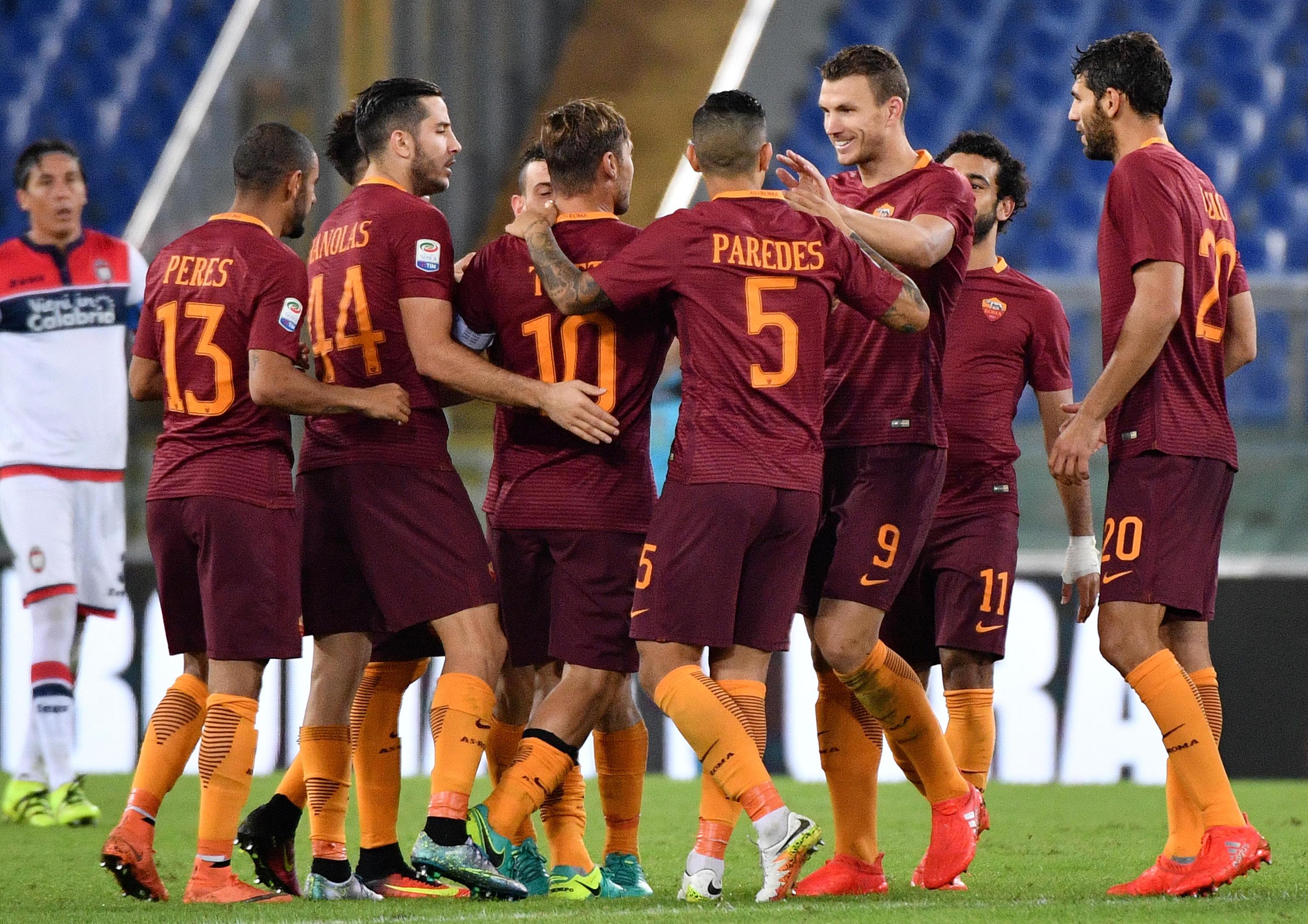 Roma: Szczesny, Florenzi, Manolas, Fazio, Peres, De Rossi, Strootman, Salah, Nainggolan, Perotti, Dzeko.