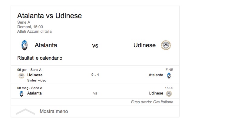 ATALANTA-UDINESE 1-1, gol: Duvan Zapata 9′, Bellini rigore 19′.