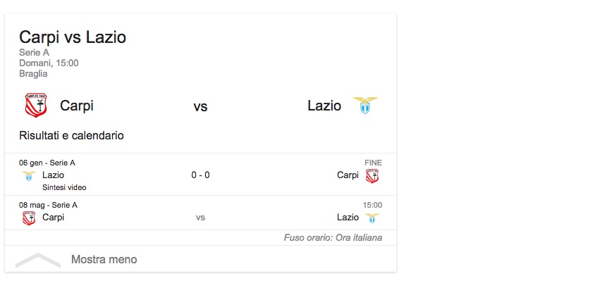 CARPI-LAZIO 1-3, gol: Bisevac 23′, Antonio Candreva 32′ e Miroslav Klose 73′, Mbakogu 83′.