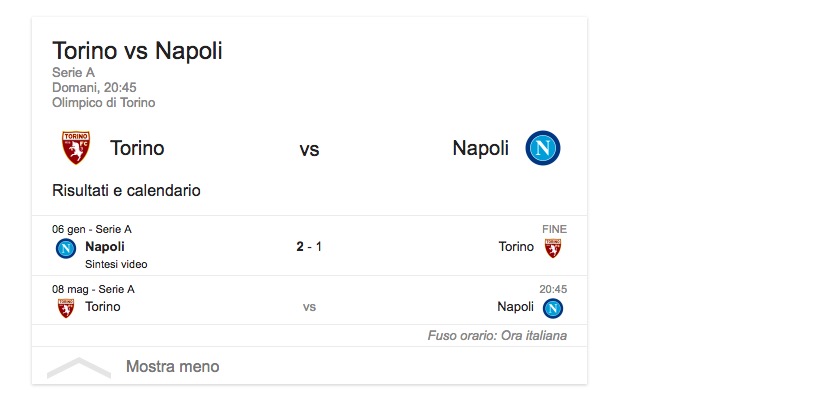 TORINO-NAPOLI 1-2, gol: Gonzalo Higuain 12′, Josè Maria Callejon 19′, Bruno Peres 65′.