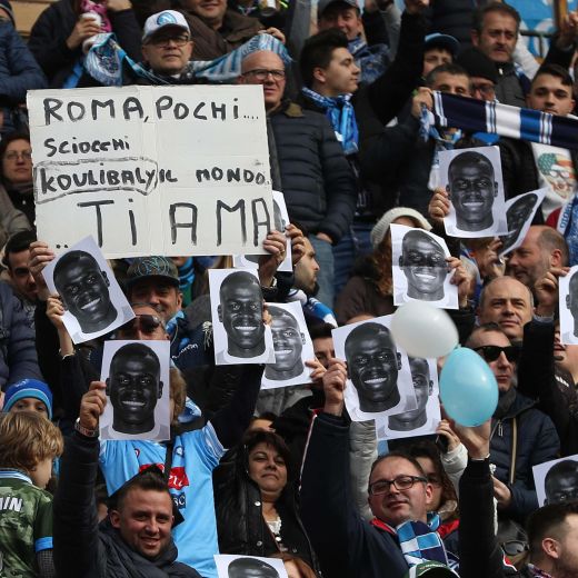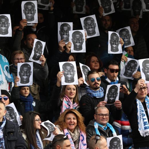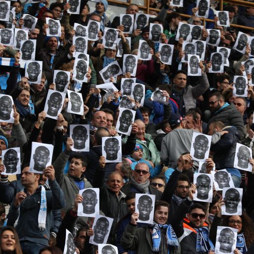 NAPOLI – “Siamo tutti Koulibaly”. Migliaia di maschere raffiguranti il difensore del Napoli, Koulibaly, sono state distribuite nello stadio San Paolo, a Napoli, dai tifosi partenopei, prima della partita contro il Carpi, per dimostrare solidarietà al calciatore franco-senegalese, oggetto di cori razzisti da parte dei sostenitori della Lazio, nel corso del match di mercoledì scorso.