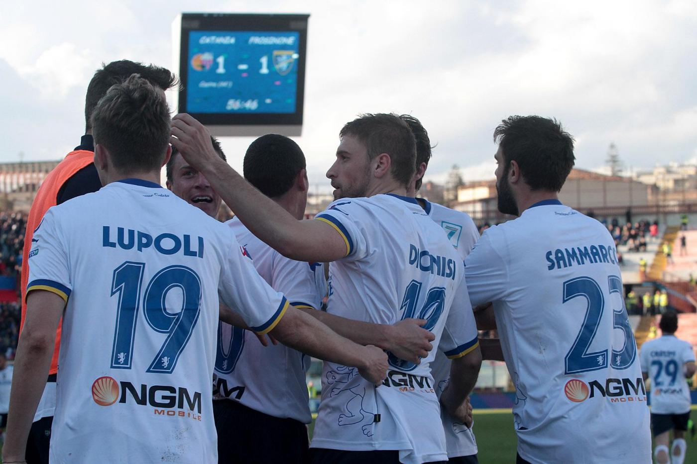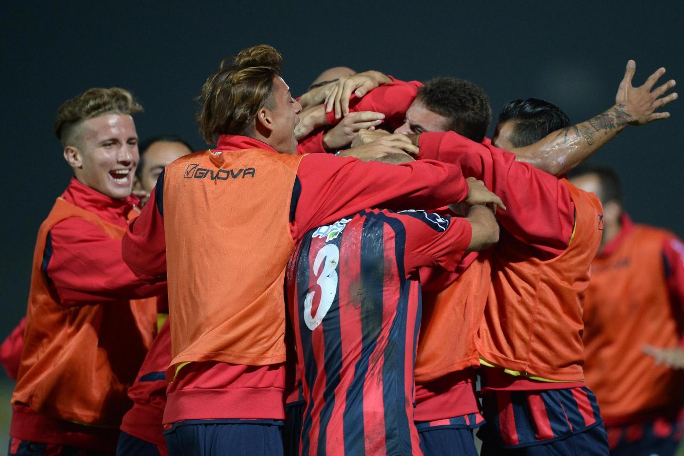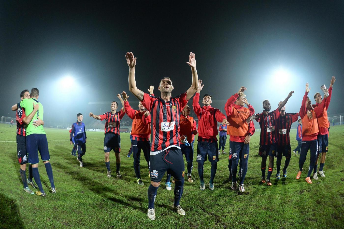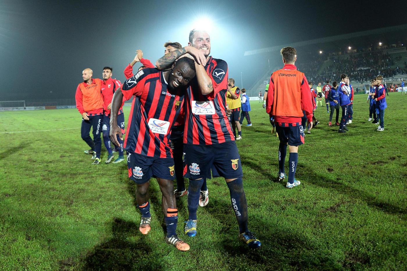 Nella foto : L’esultanza della Casertana a fine partita contro il Catania