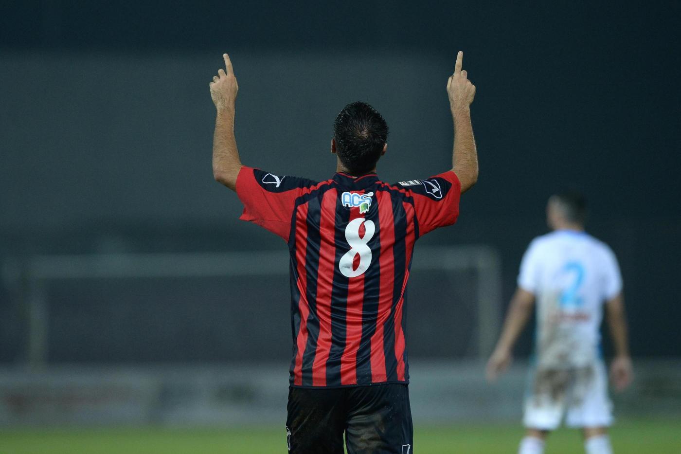Nella foto : L’esultanza di Alfageme dopo il goal realizzato contro il Catania nel match di Legapro