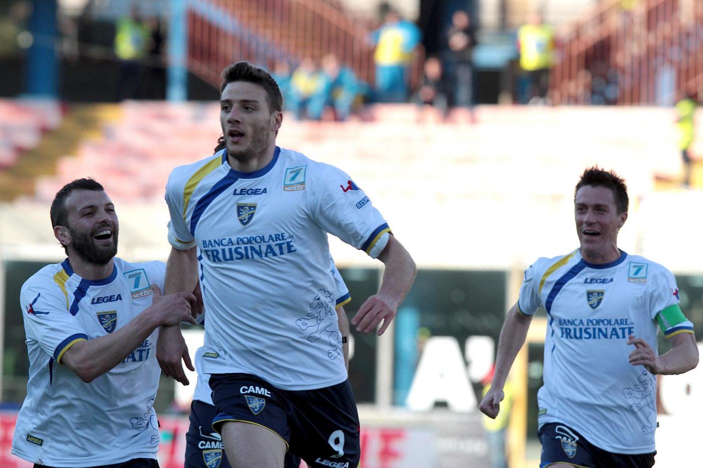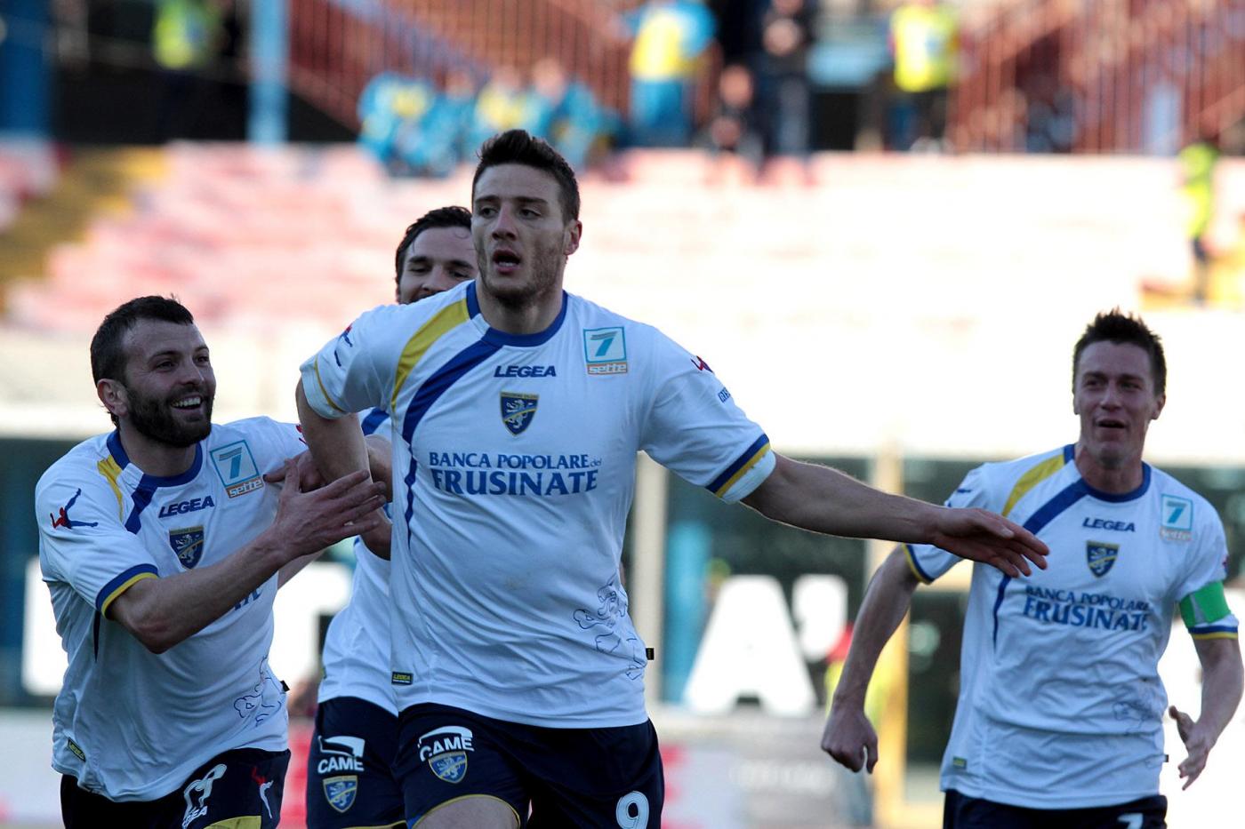 Nella foto : L’esultanza di Alfageme dopo il goal realizzato contro il Catania nel match di Legapro
