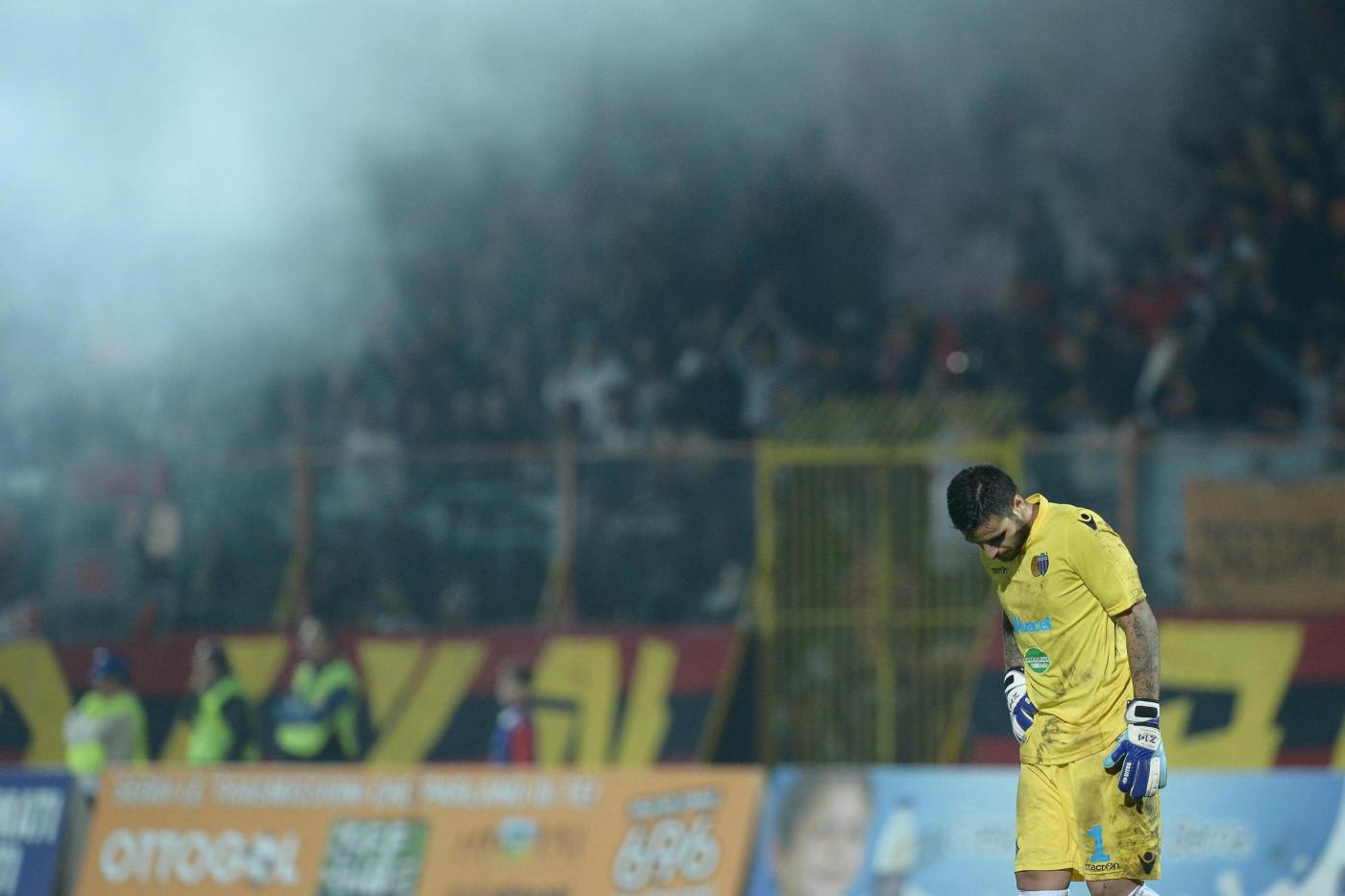 Nella foto : La diserazione del portiere del Catania, Bastianoni, durante il match di Legapro con la Casertana