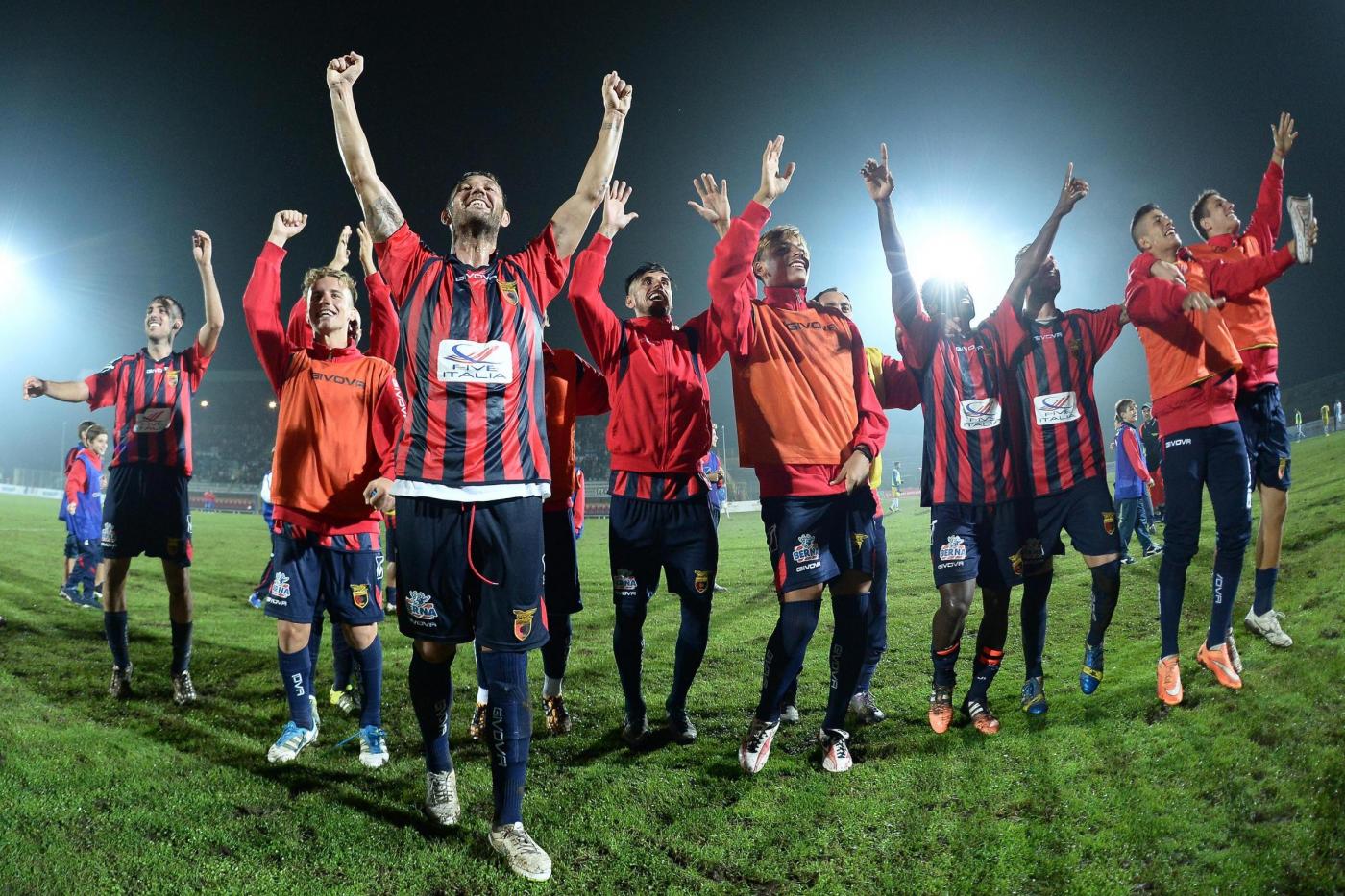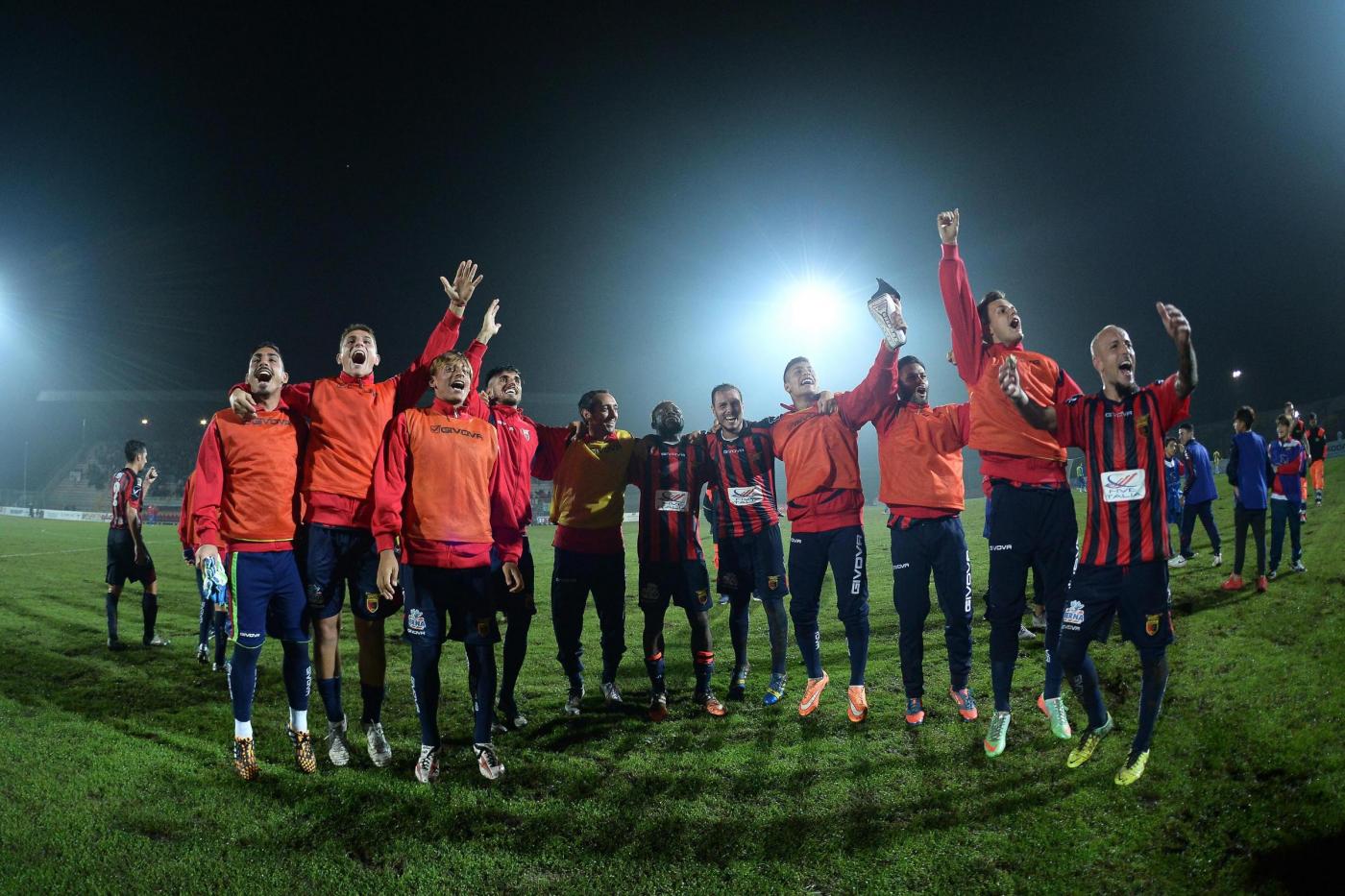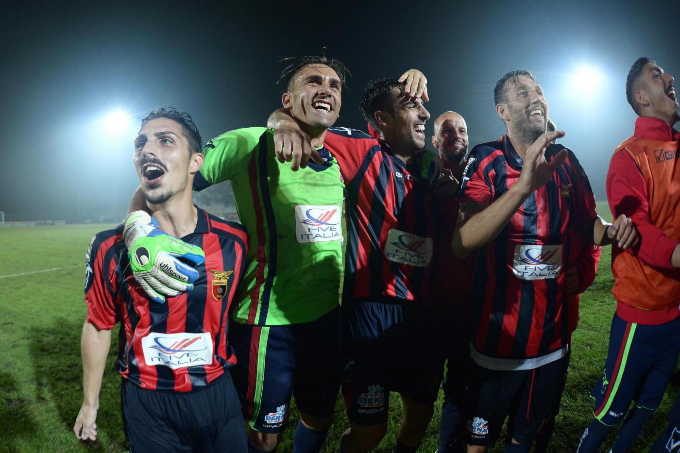Nella foto : L’esultanza della Casertana a fine partita contro il Catania
