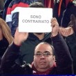 ROMA, STADIO OLIMPICO – La Roma è uscita tra i fischi dei tifosi dopo il pareggio interno contro il Milan, 1-1 che è stata l’ennesima delusione stagionale per il popolo giallorosso. Risultato negativo che ha evidenziato la protesta virale di un tifoso della Roma: un civilissimo foglio di carta con sopra la scritta “sono contrariato”.
