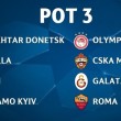 URNA 3: Shakhtar Donetsk, Siviglia, Lione, Dinamo Kiev, Olympiacos, CSKA Mosca, Galatasaray, Roma.