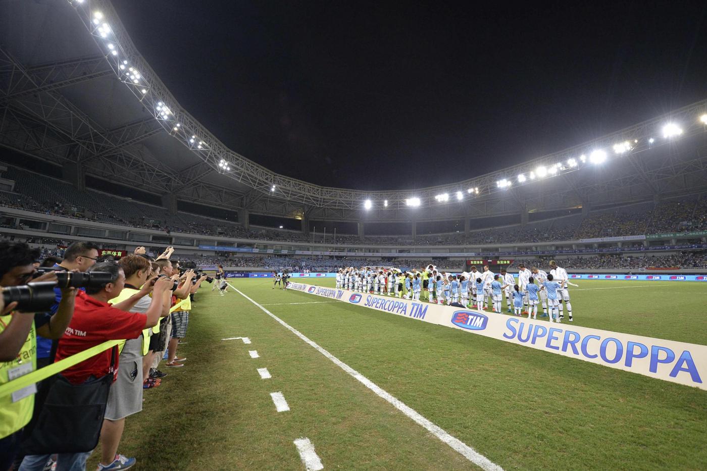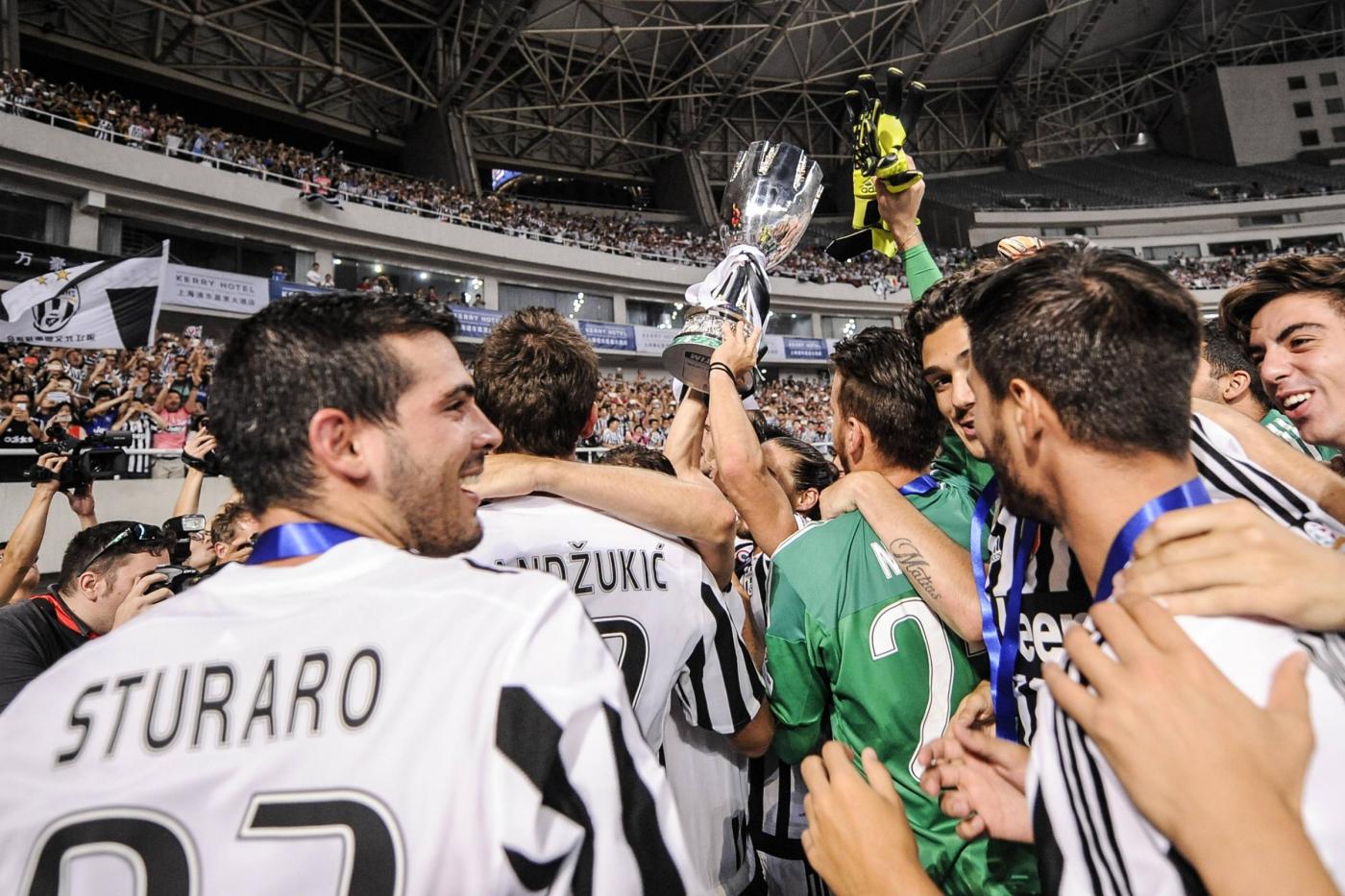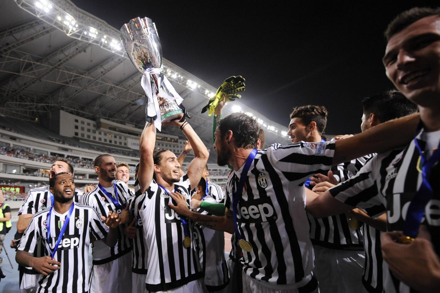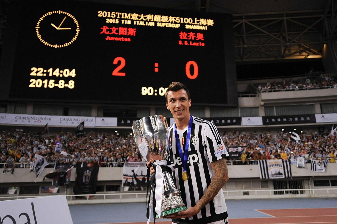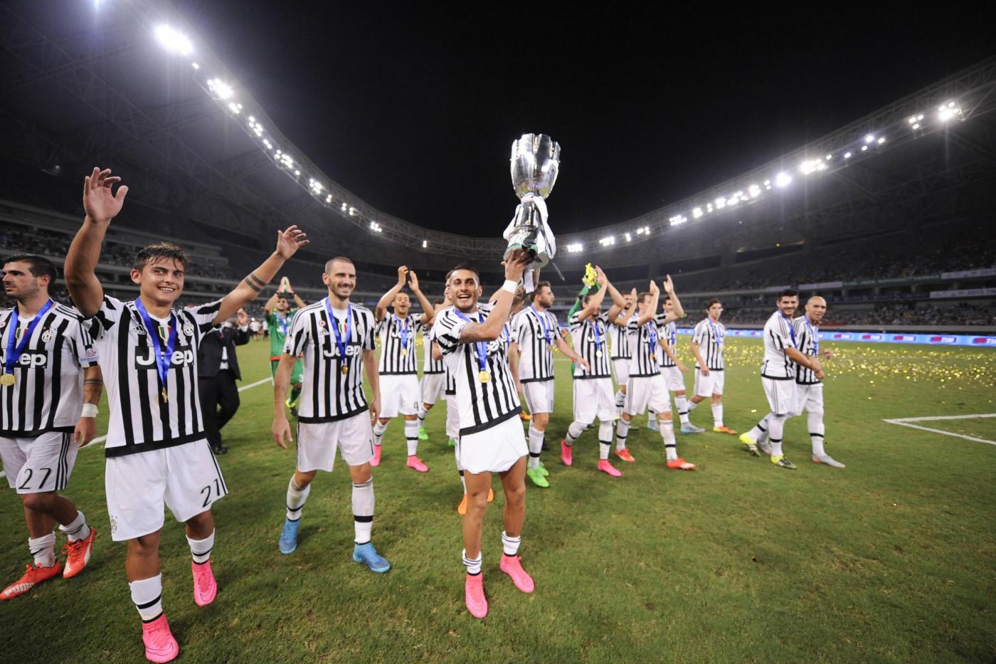 SHANGHAI (CINA) – La Juventus vince la sua settima Supercoppa grazie alle reti dei due nuovi acquisti Mandzukic e Dybala. Due gol in 4 minuti. A Shanghai, in uno stadio dal manto erboso pessimo e in un ambiente condizionato dal forte vento, la squadra di Allegri ha battuto 2-0 la Lazio dopo un primo tempo all’insegna della noia, in cui però le cose migliori avevano cercato di farle i giocatori biancocelesti.