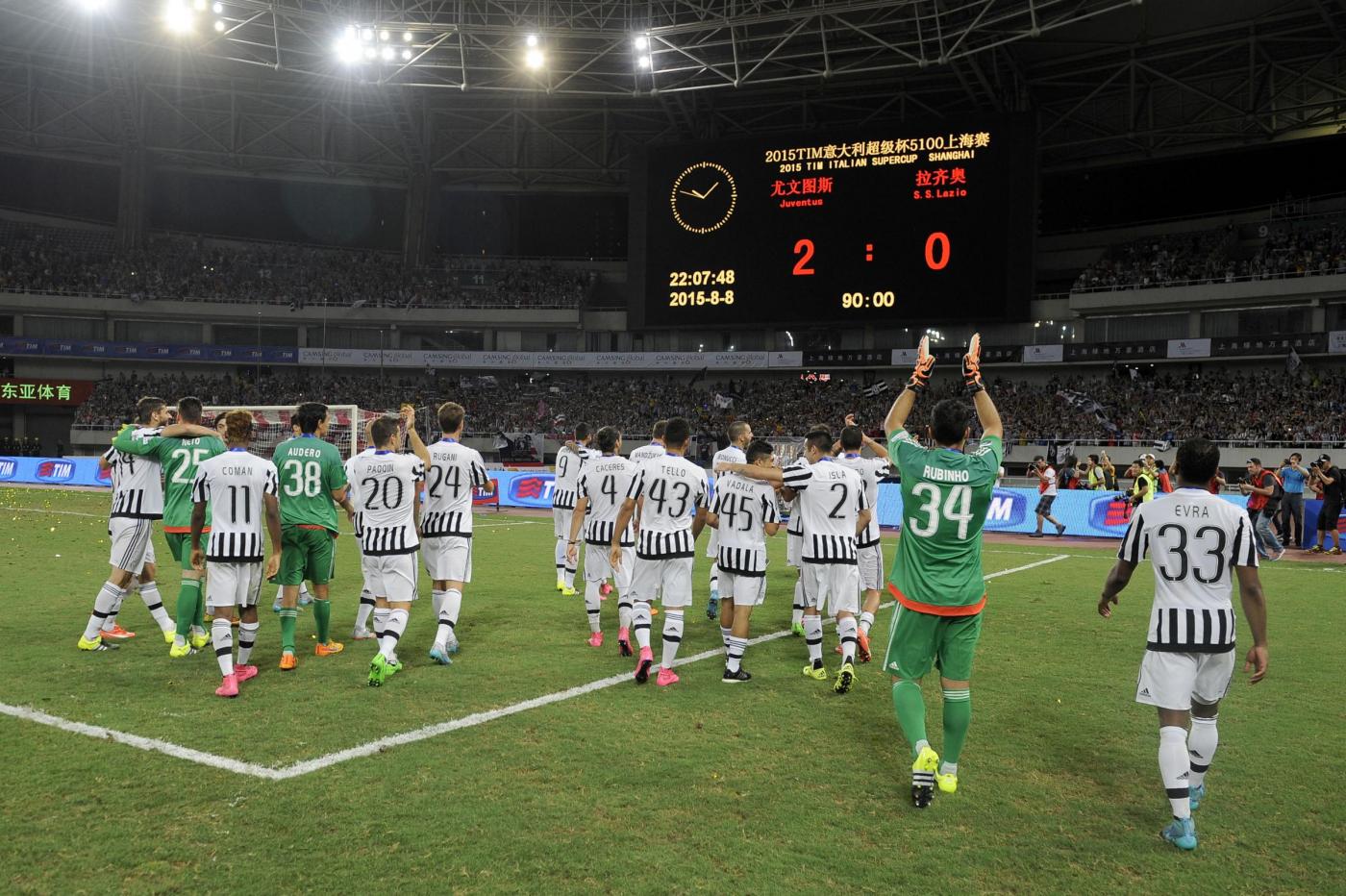 La Lazio accusava vistosamente il doppio colpo e a nulla valevano i timidi tentativi di reazione: a quel punto la Juve aveva il match in pugno e riusciva a controllarlo agevolmente, per la gioia dei suoi tanti tifosi cinesi che hanno gremito gli spalti vestiti con le maglie bianconere. Così la Juve continua la sua striscia di successi, finale di Champions di Berlino a parte, e comincia nel migliore dei modi la stagione calcistica.