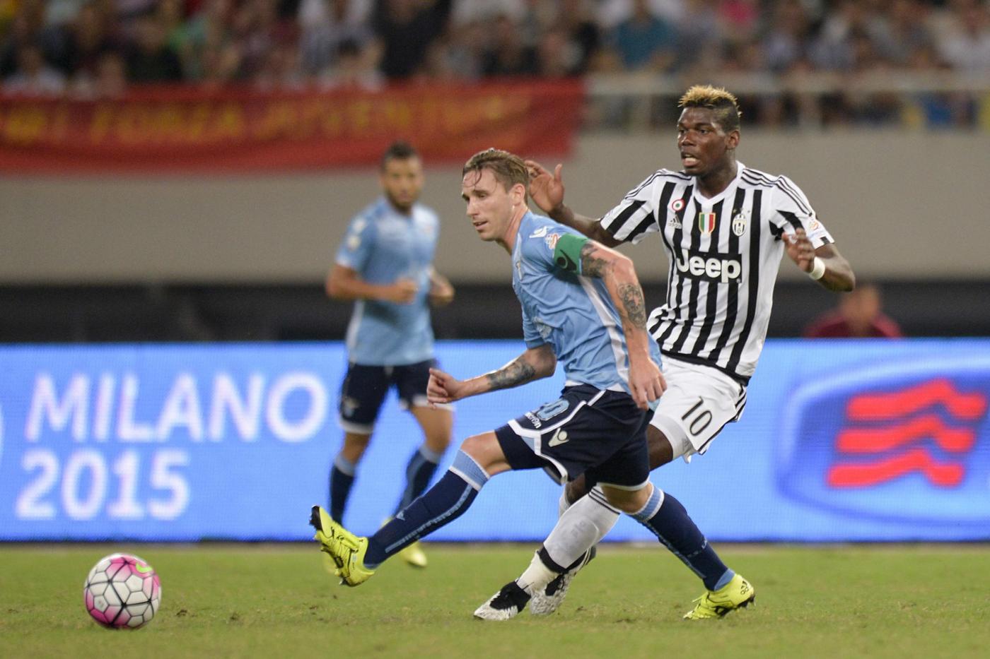 Dopo una prima fase di partita giocata su ritmi blandi (soprattutto da parte della Juve, che cercava di fare possesso palla) con le squadre impegnate a studiarsi e a rimanere in equilibrio, la Lazio si rendeva pericolosa con un paio di incursioni di Candreva che andava sul fondo e crossava, senza però che i suoi compagni riuscissero a concretizzare quanto realizzato dal compagno. Pogba correva per fare pressing in ogni parte del campo, mentre la Lazio, con nonno Klose isolato in avanti, non riusciva mai a rendersi pericolosa. L’equilibrio dei primi 45′ veniva meno nel secondo tempo: la Juve si rendeva subito pericolosa dopo tre minuti, quando Mandzukic si involava verso la porta magistralmente innescato da un assist di Pogba però Marchetti riusciva a rimediare uscendo di piede.