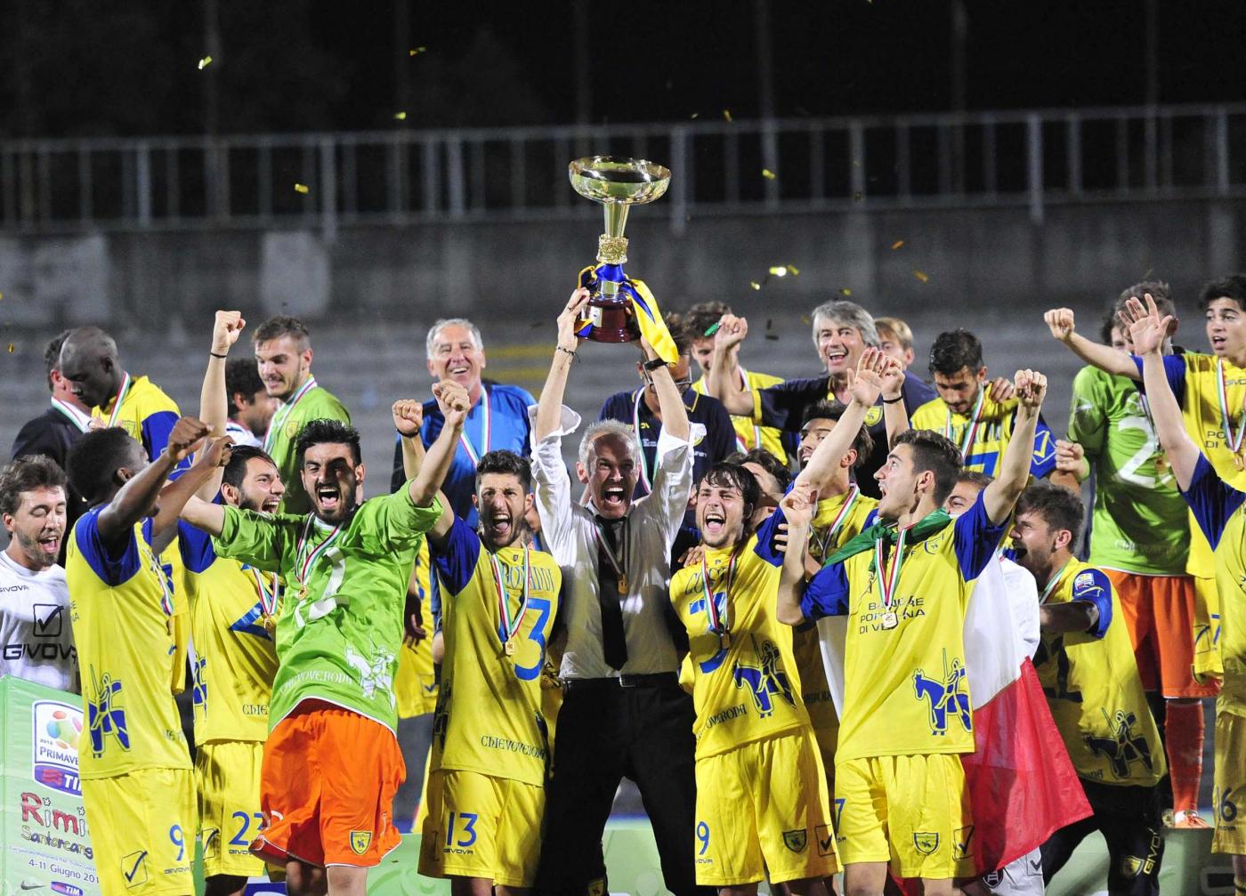 CHIEVO (5-3-2) Moschin; Troiani (dal 27′ s.t. Costa), Aldrovandi, Brunetti, Magri, Sane; Messetti, Mbaye, Steffè (dal 5′ s.t.s Rasak); Marchionni (dal 21′ p.t. Gatto), Yamga. (Picco, Sorcan, Toskic, Bianchi, Haddou, Rasak, L. Bertoldi, Zamboni, M. Bertoldi, Puntar). All. Nicolato.