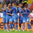 Empoli (4-3-1-2): Skorupski 6, Laurini 5.5, Tonelli 5.5, Barba 6, Rui 6, Zielinski 6 (17′ st Paredes), Diousse 5.5 (1′ st Ronaldo 6.5), Croce 6, Saponara 7, Pucciarelli 6 (37′ st Livaja sv), Maccarone 6. (23 Pelagotti, 3 Zambelli, 6 Bittante, 15 Costa, 31 Camporese, 13 Maiello, 32 Paredes, 33 Krunic, 77 Buchel, 22 Piu). All.: Giampaolo 6. Arbitro: Fabbri di Ravenna 6.5. Reti: nel pt 19′ Zapata; nel st 28′ Paredes, 48′ Maccarone. Recupero: 2′ e 5′. Angoli: 5-2 per l’Empoli. Espulso: Kone per doppia ammonizione. Ammoniti: Iturra, Adnan, Badu, Kone, Laurini, Ronaldo, Marquinho per gioco falloso, Maccarone per simulazione. Spettatori: 14 mila circa.