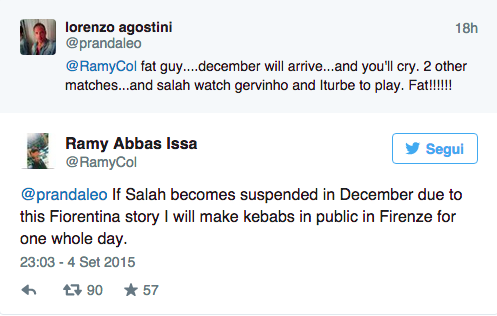 Fiorentina (3-4-2-1): Tatarusanu; Tomovic, G. Rodriguez, De Maio; Tello, Sanchez, Badelj, Milic; Borja Valero, Bernardeschi; Babacar. A disp.: Dragowski, Lezzerini, Diks, Cristoforo, Salcedo, Maxi Oliveira, Toledo, Chiesa, Ilicic, Zarate, Kalinic. All.: Paulo Sousa Squalificati: – Indisponibili: Astori.