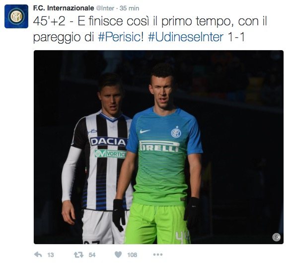 #Perisic 1:1 #UdineseInter pic.twitter.com/pXond4r7w3