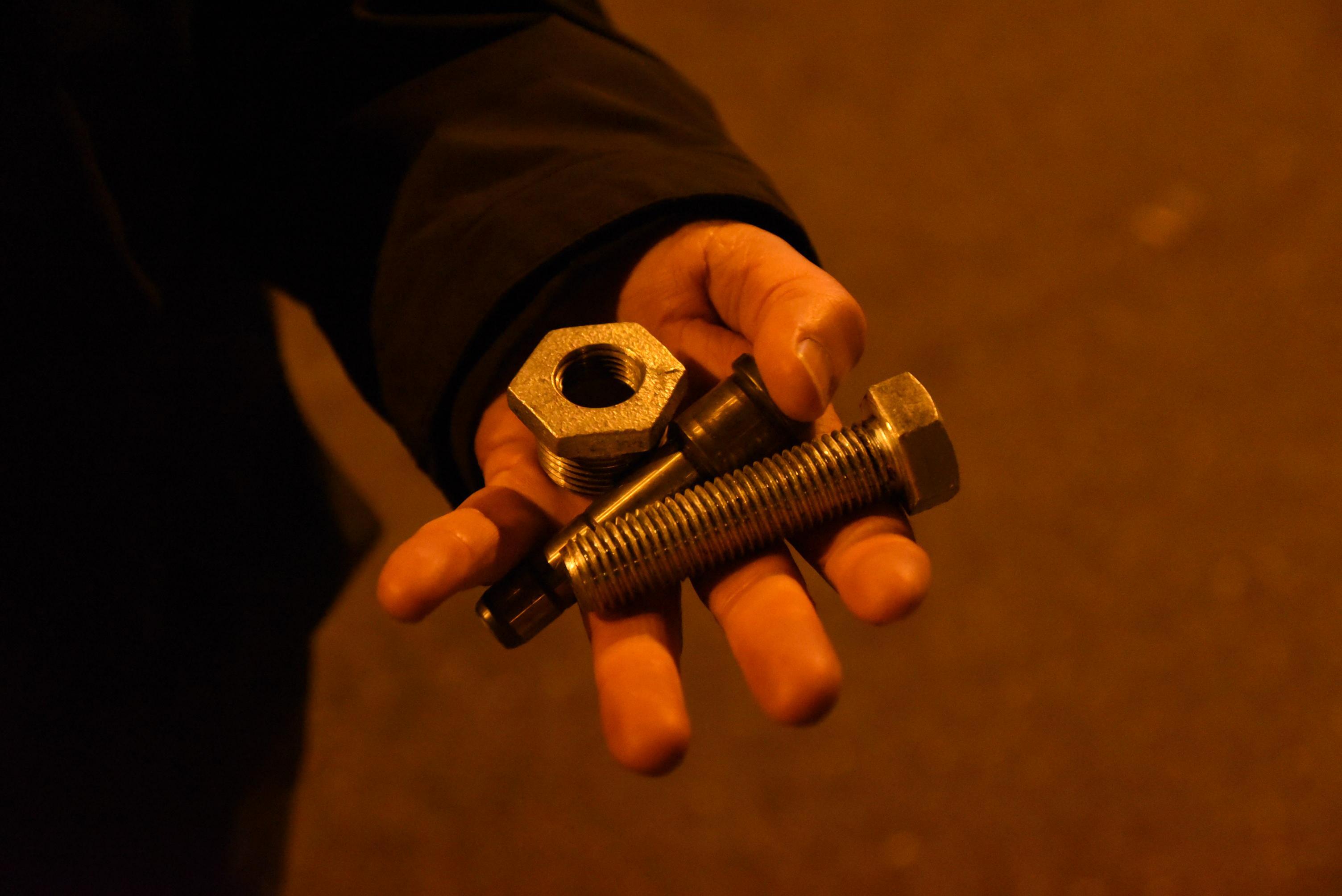 Alcuni dei bulloni tirati dai tifosi atalantini durante gli scontri con le forze dell’ordine all’esterno dallo stadio Atleti Azzurri d’Italia di Bergamo (Ansa)