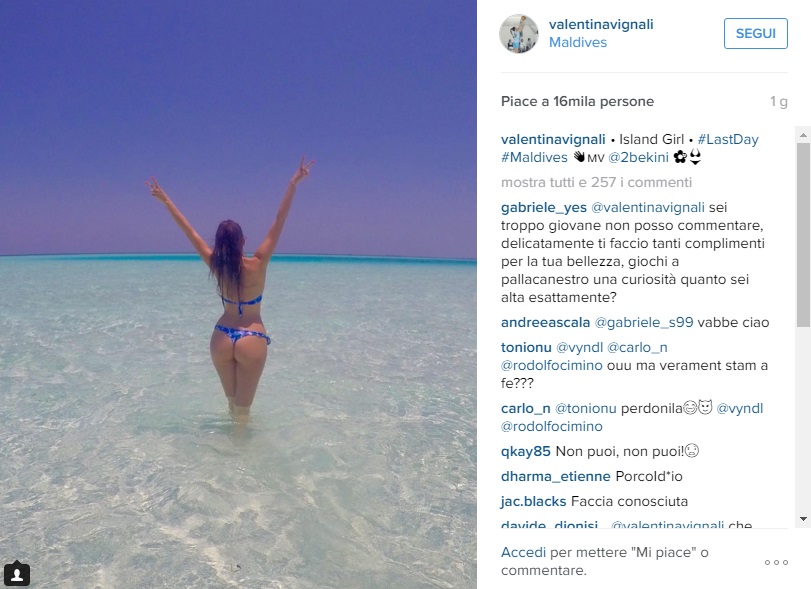 ROMA – Incidente sexy per la cestista Valentina Vignali. Durante un’immersione alle Maldive, fatta con tanto di GoPro che riprendeva il tutto, Vignali ha infatti perso la parte superiore del costume. L’intoppo non sembra averla imbarazzata più di tanto. Anzi. Valentina, infatti, ha comunque utilizzato il video postandolo sul social network Instagram con una didascalia divertita: