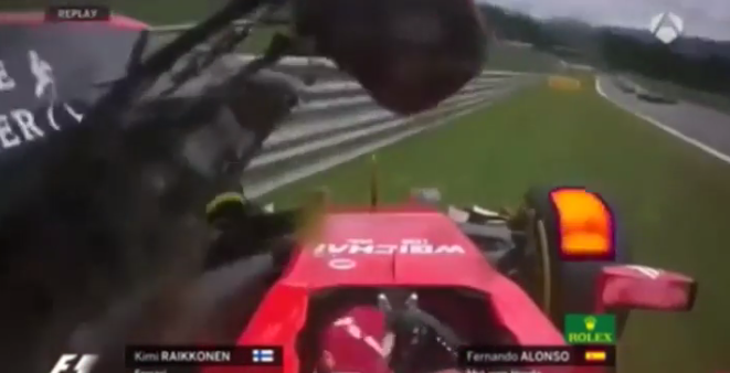 Dalle prime immagini televisive sembra che la Rossa di Raikkonen abbia sbandato tagliando la strada alla McLaren di Alonso che sopraggiungeva. Video YouTube, Alonso-Raikkonen: incidente terribile Gp Austria. Piloti illesi. Il video caricato su YouTube.