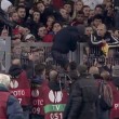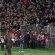 Invitati dai ‘veterani’ Totti, De Sanctis e De Rossi, i giocatori della Roma sono andati sotto la curva sud a parlare con i tifosi. In particolare il capitano ha ‘trattato’ a lungo con un capo ultrà seduto ‘a cavallo’ della balaustra.