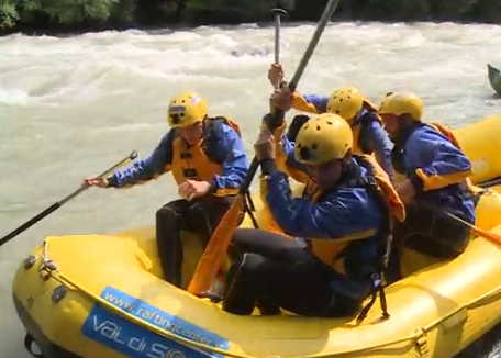 PINZOLO – Il raduno pre-campionato dell’ As Roma prosegue a ritmo di rafting. Il Rafting รจ una discesa fluviale su un particolare gommone inaffondabile e autosvuotante chiamato raft. L’equipaggio governa l’imbarcazione tra le rapide grazie alle pagaie, mentre per la sicurezza sono previsti: muta in neoprene, aiuto al galleggiamento, casco e corda da lancio.