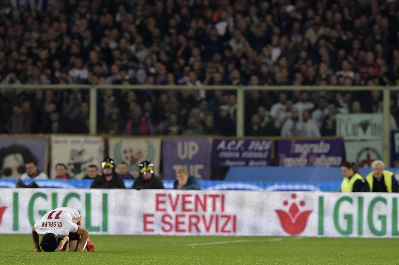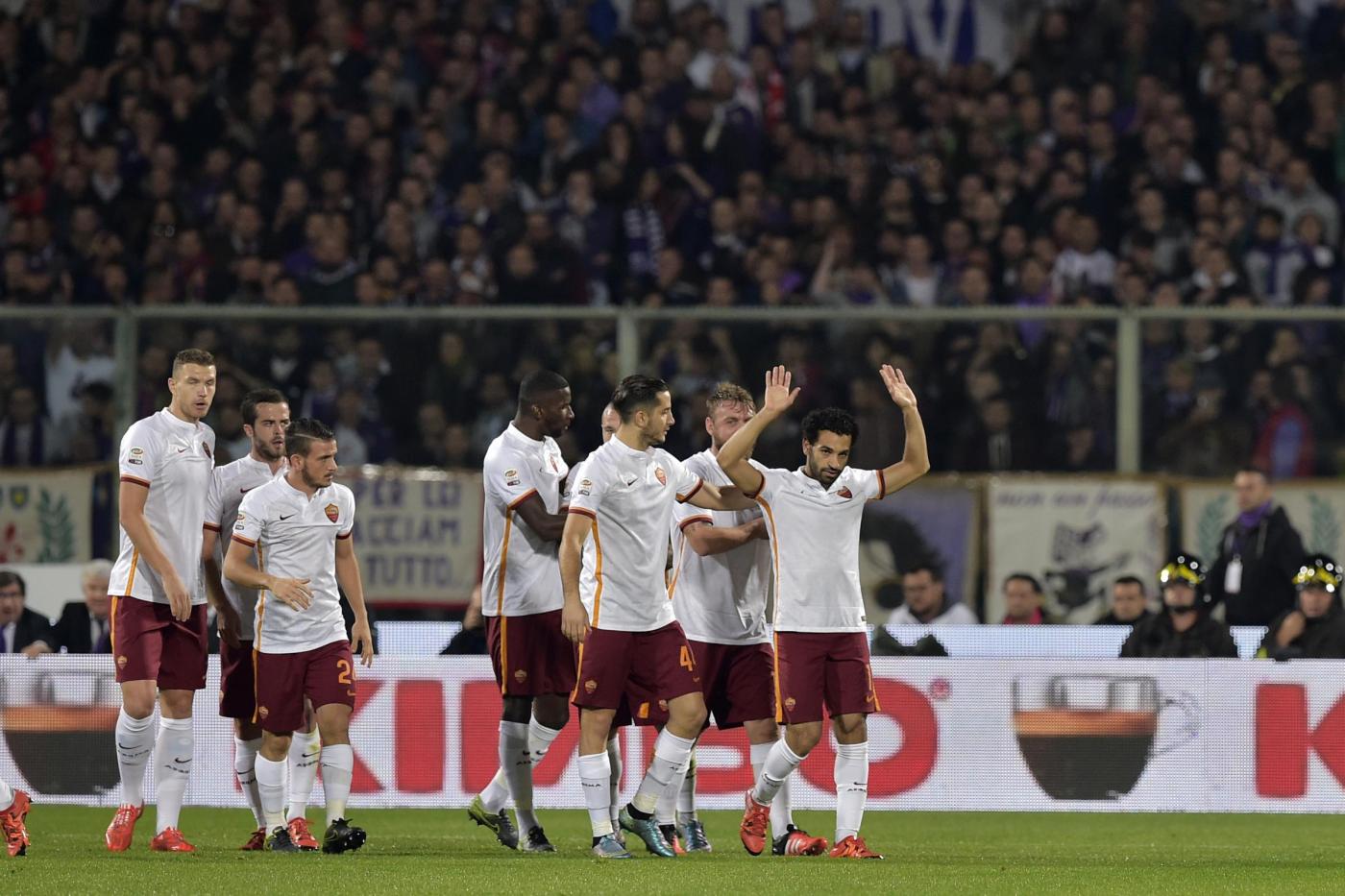 ROMA – Un gol ed una espulsione per Salah nel giorno del suo rientro a Firenze con la maglia della Roma. La squadra di Rudi Garcia ha vinto 2-1 a Firenze ed uno dei due gol è stato segnato dal calciatore egiziano. Nella parte finale della partita Salah è stato espulso per un gesto nei confronti dell’arbitro Orsato. I tifosi della Fiorentina non lo hanno accolto bene e hanno fischiato Salah durante tutto l’arco del match.