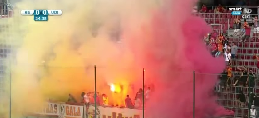 TRIESTE – E’ stata sospesa al 34/o minuto del primo tempo, a causa dei petardi e dei fumogeni lanciati in campo dai tifosi del Galatasaray, la partita amichevole tra la squadra turca e l’Udinese, in programma a Klagenfurt. Lo rende noto il sito ufficiale della squadra friulana.