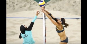 RIO DE JANEIRO – Doa e Kira, divise da una rete: una col capo velato, l’altra in bikini. Sono avversarie, ma saltano e schiacciano allo stesso modo sulla spiaggia di Copacabana. Le culture si mostrano per unirsi alle Olimpiadi, e anche qui a Rio, la sfida tra l’egiziana El-ghobashy e la tedesca Walkenhorst, diventa la cartolina e lo spot dell’integrazione: Doa ha 19 anni, per lei né top, né gambe nude. Sulla sabbia di una delle baie più famose al mondo, si è presentata per la sua prima Olimpiade coperta dalla testa ai piedi, pants neri, maglia verde e hijab in testa.