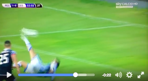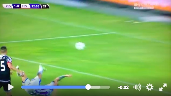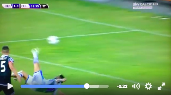 Gianluca Lapadula video gol rovesciata Pescara-Cesena 1-0