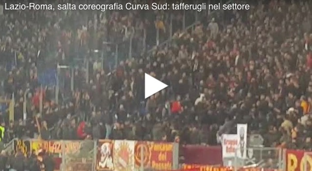 ROMA – La coreografia della Curva Sud per il derby Lazio-Roma è saltata a causa di tafferugli tra tifosi giallorossi nella vetrata bassa lato Distinti Est. Il caos interno alla Curva Sud ha fatto saltare la coreografia che era stata preparata per il derby e che qualche ora prima era stata svelata da alcune pagine facebook della Lazio. Nonostante questi disordini, in Curva Sud sono stati fatti alcuni tentativi per esporla ma senza successo.Â