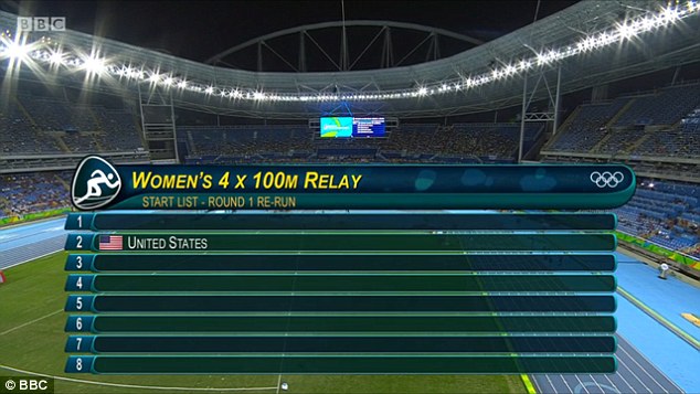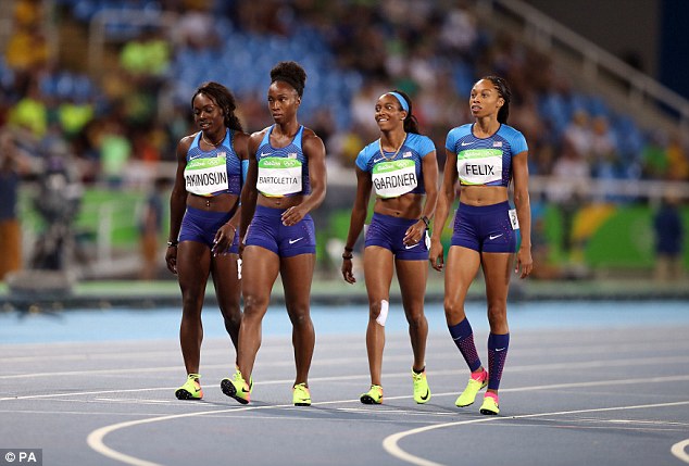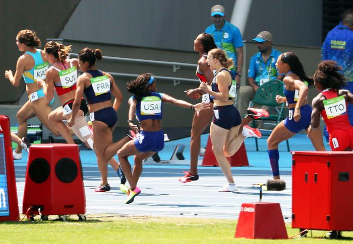 Le statunitensi erano state squalificate in batteria dopo che Allyson Felix non era riuscita a ricevere il testimone da English Gardner. Il team Usa, campione in carica, aveva fatto appello contro la decisione della giuria per un leggero contatto tra la Felix e la staffettista brasiliana.