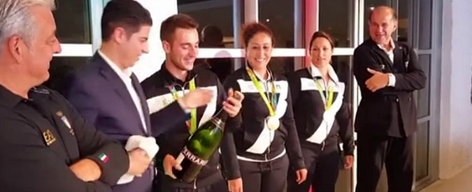 RIO DE JANEIRO – Durante i festeggiamenti per l’oro vinto al tiro a volo specialità skeetalle Olimpiadi di Rio 2016, Gabriele Rossetti è stato ‘tradito’ dal tappo della bottiglia di spumante.