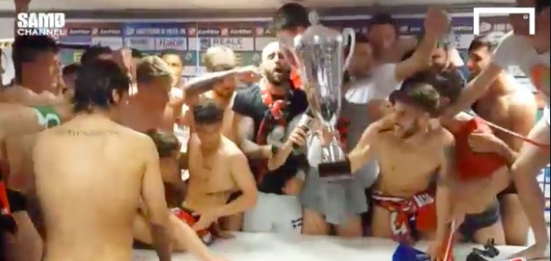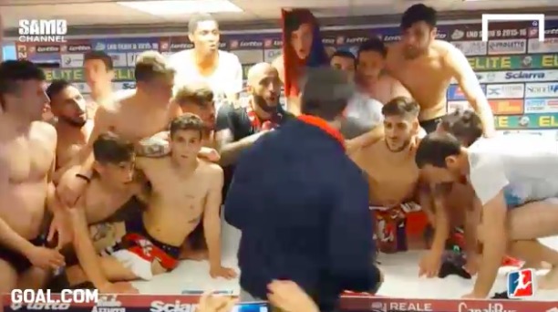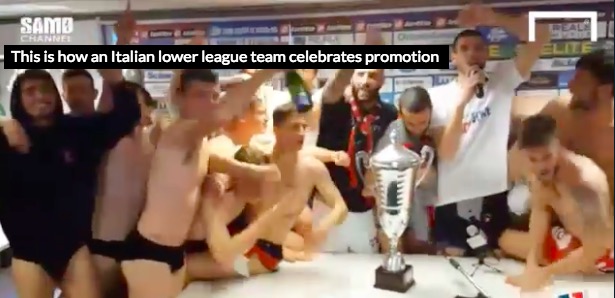 I giocatori della Sambenedettese hanno festeggiato con estrema pacatezza la promozione in Lega Pro. pic.twitter.com/lX3LoaTZu9