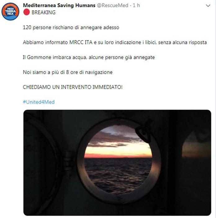 Migranti, ong Mediterranea lancia allarme: “120 a rischio annegamento, altri già morti” Cronaca Italia Migranti, ong Mediterranea lancia allarme: “120 a rischio annegamento, altri già morti” admin Novembre 24, 2018 ROMA – L’ong Mediterranea ha lanciato una richiesta d’aiuto per un barcone di migranti in difficoltà . Alcune...Read More