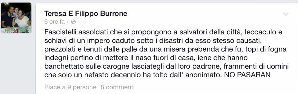 Consigliere dà dei “topi di fogna” a quelli dell’opposizione su Facebook Politica Italiana Consigliere dà dei “topi di fogna” a quelli dell’opposizione su Facebook admin Giugno 16, 2015 Consigliere dà dei “topi di fogna” a quelli dell’opposizione su Facebook. Filippo Burrone, consigliere comunale eletto a...Read More