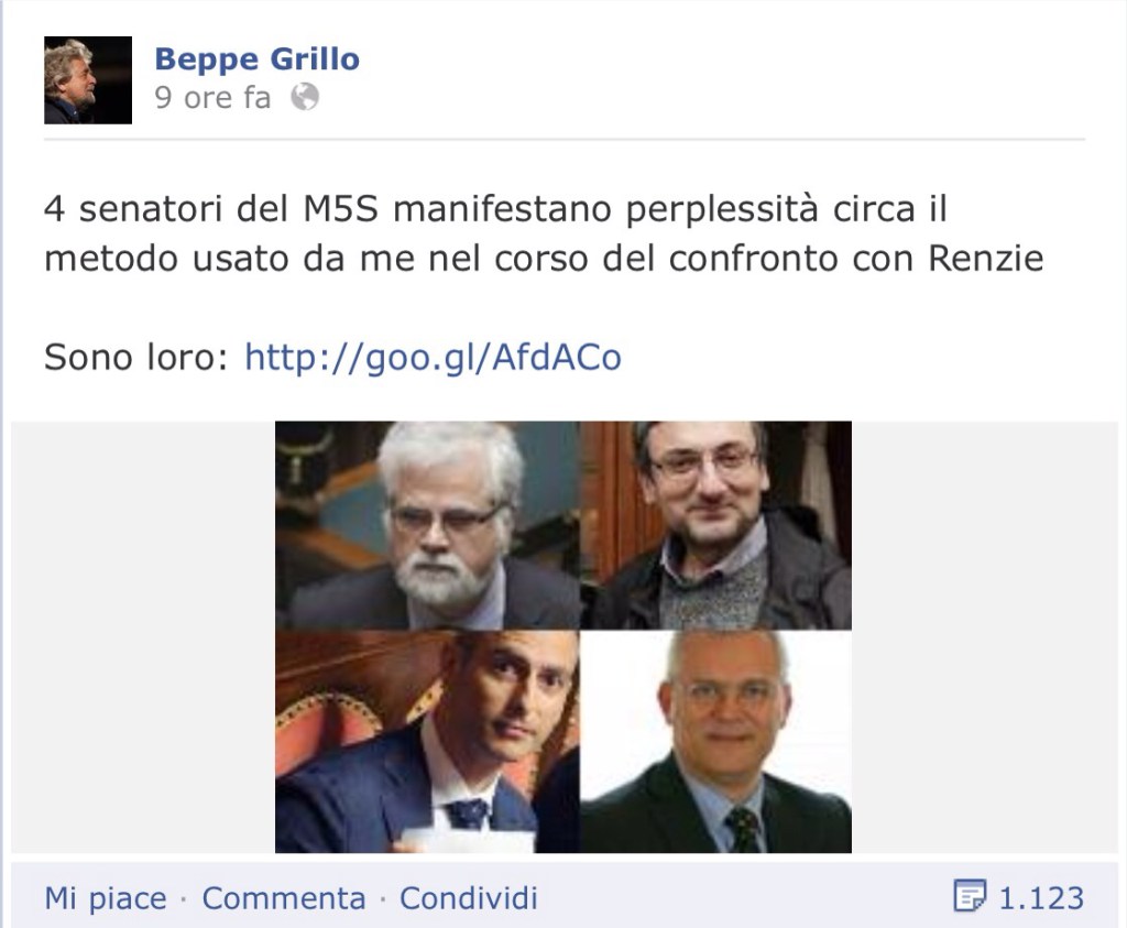 M5S, chi dissente da Grillo viene attaccato pubblicamente Politica Italiana M5S, chi dissente da Grillo viene attaccato pubblicamente admin Ottobre 25, 2015 M5S, chi dissente da Grillo viene attaccato pubblicamente. Sbatti il mostro in prima pagina. Vi ricordate il...Read More