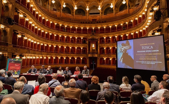 Alla conferenza stampa erano presenti la sindaca di Roma Virginia Raggi, il ministro dei Beni e delle Attività Culturali e del Turismo, Alberto Bonisoli, il capo di Gabinetto della Regione Lazio Albino Ruberti (in rappresentanza del Presidente Zingaretti, trattenuto da altro impegno), il presidente della Camera di Commercio di Roma Lorenzo Tagliavanti, oltre al sovrintendente dell’Opera il ministro dei Beni e delle Attività Culturali e del Turismo, al direttore Artistico Alessio Vlad e alla direttrice del Ballo Eleonora Abbagnato.