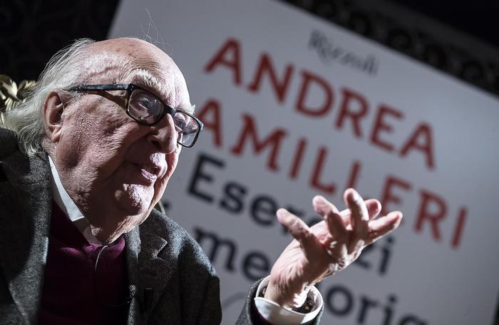 Andrea Camilleri durante la presentazione di un suo libro (foto da archivio ANSA)