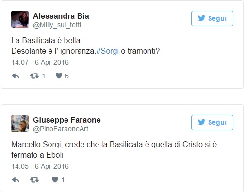 Nel 2016 Renzi decide d’intervenire ma perché non è successo nulla? Non è vero quello che ha detto Emiliano, che la Puglia non era contraria ma in realtà c’era una lite tra Emiliano e Pittella e tra Pettilla e la sindaca di Corleto Perticale. Ti sembra possibile che su temi ambientali deve decidere un piccolo comune che non ha neanche un geometra? […] Dopo quasi 27 anni la Basilicata non è stata in grado di avviare l’estrazione del petrolio. Il Governo cosa poteva fare? Non doveva intervenire con la Guidi. Sai qual era l’argomento tra Pittella e Emiliano? Io non ti concederò mai una parte delle royalties perché mi devi i soldi dell’acqua […] una regione dove non c’è lavoro, dove c’è desolazione, non vorrei che sembrasse che si sia a favore dell’estrazione del petrolio a qualsiasi prezzo […] si può rinunciare al petrolio, l’abbiamo visto nel servizio, vivono con le galline, con la mucca, si vive benissimo”. Il libro di Carlo Levi “Cristo si è fermato a Eboli” è stato scritto nel 1943, mentre la regione non ha solo 14 km di costa, ma si affaccia anche sullo Ionio. Inoltre, secondo i dati Istat risalenti al 2012 la Basilicata è la sedicesima Regione italiana per Pil Pro-capite davanti a Puglia, Sicilia, Calabria e Campania e la diciottesima per Pil totale davanti Molise e Valle d’Aosta.