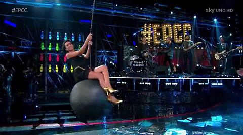 ROMA –ย Ospite nello show di Sky Uno di Alessandro Cattelan, Caterina Balivo si รจ presentataย con tacchi alti e dorati. La conduttrice di Detto Fatto gioca, incitata da Alessandro Cattelan, a imitare Miley Cyrus “in modalitร wreking ball”. In pratica, monta a cavalcioni una palla e si diverte un mondo comeย la popstar. Per la gioia dei fan.