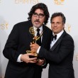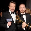 Migliore attore drammatico è stato incoronato infatti Bryan Cranston, alias Walter White, che con un look alla Clark Gable ha ricordato di quando ragazzino amava cercare scorciatoie per sottrarsi alle proprie responsabilità e ha dedicato il premio ai giovani che sono oggi come era lui augurando loro di trovare una passione cui dedicarsi. “Amo recitare e lo farò fino al mio ultimo respiro”. Gloria anche per l’attrice non protagonista femminile di Breaking Bad, Anna Gunn e per Aaron Paul, migliore non protagonista maschile che molto commosso ha ringraziato i colleghi, due in particolare: “Grazie a Vince Gilligan, che ha cambiato la mia vita e ha creduto in me. E grazie Bryan, non c’è giorno che passa che non mi manchi venire sul set e lavorare con te e imparare da te. Mi hai insegnato tanto come attore, ma soprattutto come uomo”.