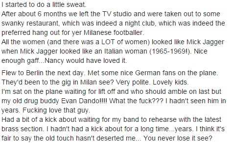 “Non parlo del playback, ma dell’intervista. Hai una persona in carne e ossa davanti a te che ti fa delle domande in italiano, e un fantasma nell’orecchio che te le traduce in inglese. Di solito è una cosa piuttosto goffa e complicata, ma ecco cosa è successo. E tenete conto che avevo fatte le 5 di mattina, il giorno prima, a fare casino con Nancy”