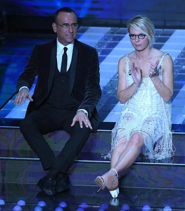 Italian hosts Carlo Conti and Maria De Filippi on stage during the 67th Festival of the Italian Song of Sanremo at the Ariston theater in Sanremo, Italy, 07 February 2017. The 67th edition of the television song contest runs from 07 to 11 February. ANSA/CLAUDIO ONORATI