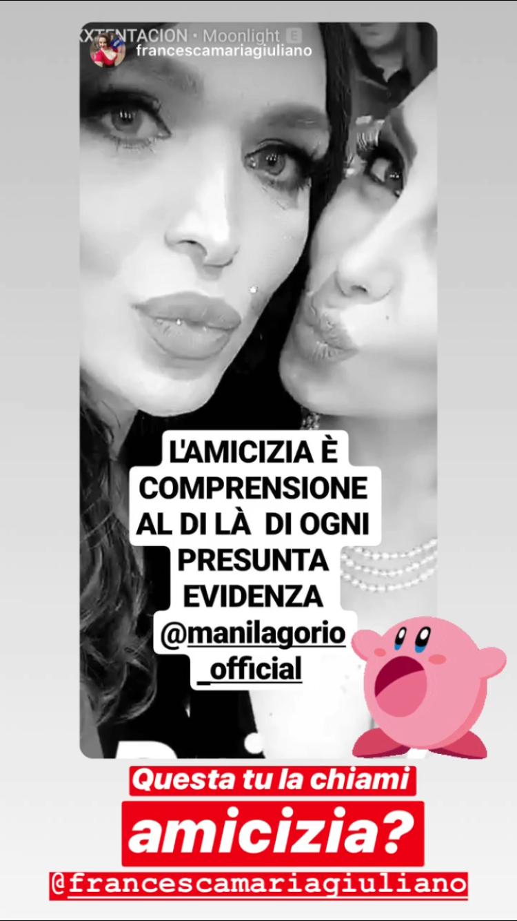 I profili di Francesca Giuliano e Manila Gorio contano complessivamente più di 400.000 followers, che si stanno appassionando a questa vicenda, per capire dove stia la verità: Francesca ha deciso finalmente di rinunciare alla recente confessata castità che dura da 2 anni? E proprio con il ragazzo (appena dichiarato pubblicamente a “Domenica Live”) di una sua amica, Manila Gorio, che l’aveva addirittura invitata al suo compleanno in Puglia?