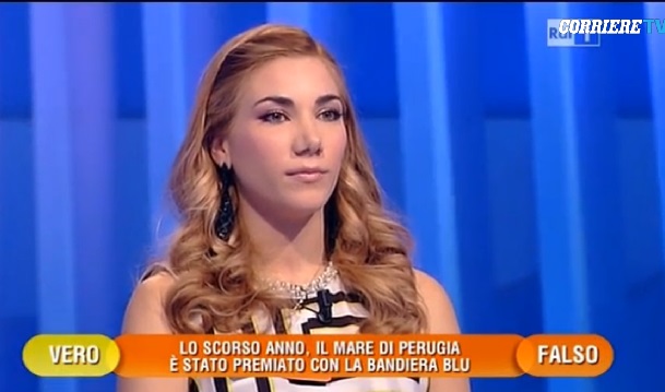 ROMA – “Lo scorso anno, il mare di Perugia è stato premiato con la bandiera blu”. Questa la domanda posta durante “L’eredità”, il quiz di Rai Uno. E la concorrente risponde sicura: “Vero”. Questa l’ultima incredibile gaffe a L’Eredità, il programma condotto da Fabrizio Frizzi. Inutile dire che su Facebook e Twitter in pochi minuti la povera concorrente è stata bersagliata da commenti sarcastici e ironici.