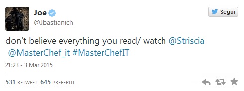 Immediata la smentita di Magnolia, la casa di produzione di Masterchef che ha respinto qualunque accusa relativa a presunte irregolarità. “Secondo il tg satirico – dice un comunicato – il concorrente Nicolò avrebbe contravvenuto al regolamento in quanto impiegato in una struttura professionale come il Sadler. La notizia è falsa e priva di qualunque fondamento. Magnolia ritenendosi danneggiata valuterà la possibilità di adire le vie legali”.