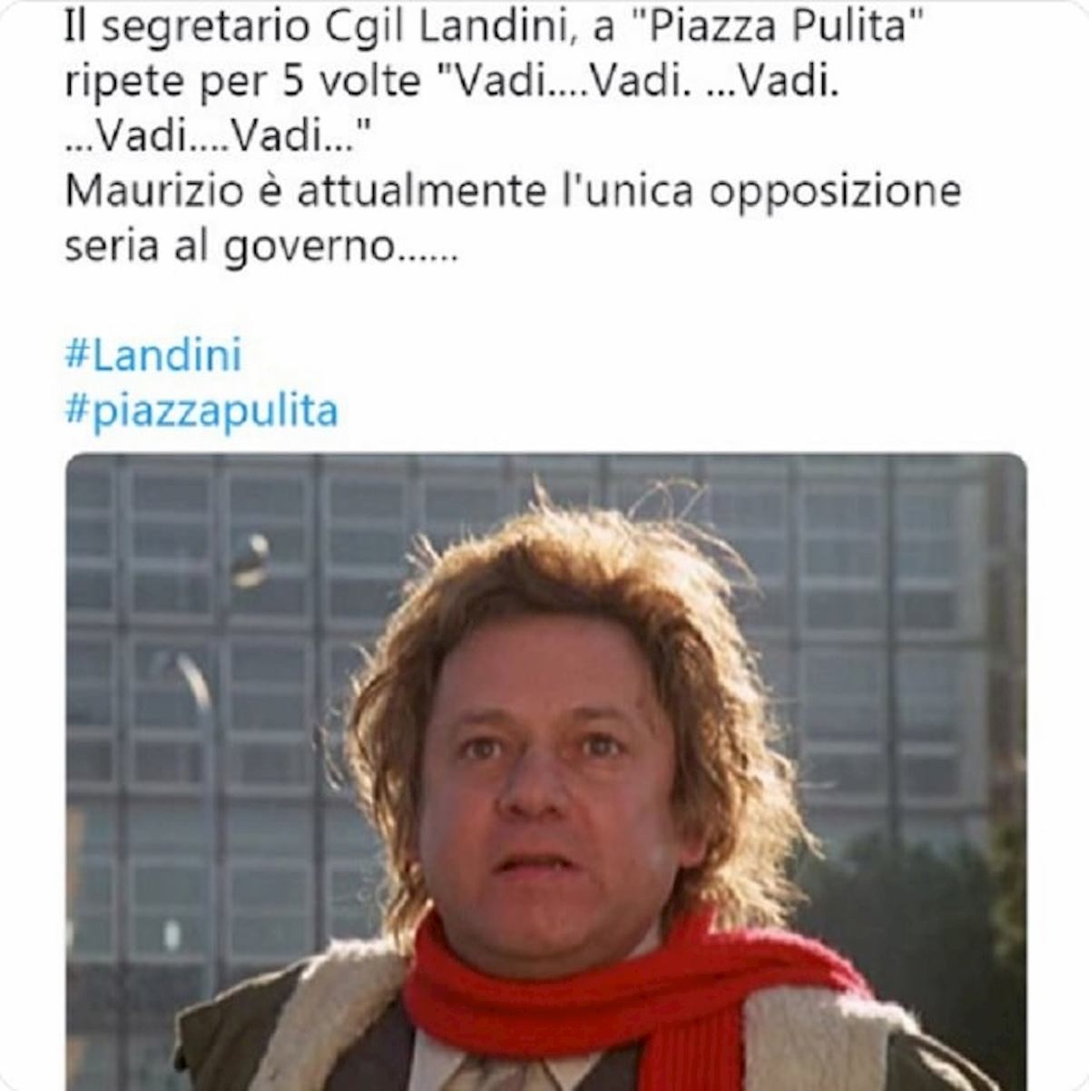 La “scivolata” di Landini al minuto 19,30 di questo video pubblicato da La7.