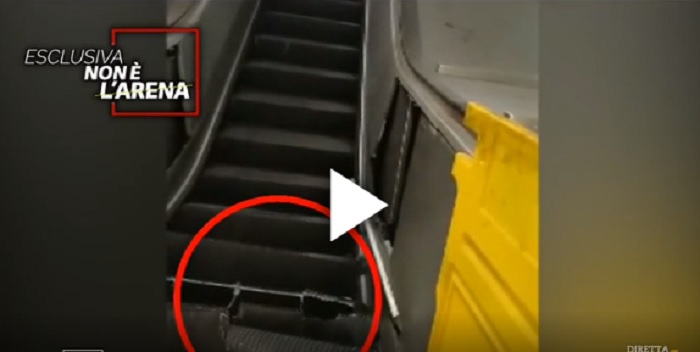 ROMA – A Roma, lo scorso 23 ottobre, ha ceduto la scala mobile della stazione metro A di piazza della Repubblica per via del peso di decine di tifosi del Cska di Mosca a Roma per la partita di Champions League. A Non è l’Arena su La7, domenica 9 giugno sono andate in onda le immagini esclusive riprese dopo circa 8 mesi dalla chiusura della stazione mostrano che in tutto questo tempo non è stato fatto nulla. Massimo Giletti le mostra in esclusiva e commenta: “Questo è il gradino spaccato della scala mobile. Sono passati sette mesi e dall’esterno io pensavo che qualcuno avesse operato. Queste immagini sono di pochissimi giorni fa”.